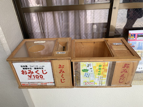 入园参观免费,面对前殿右手边的社务所门口可以抽签,100日元抽一次,投币抽签靠自觉。