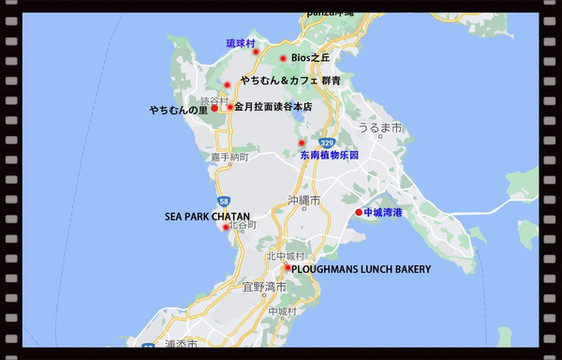具体路线:中城港湾—东南植物乐园—Bios之丘—Panza冲绳—琉球村—やちむんの里—やちむん&カフェ群青—金月拉面读谷本店