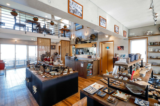 咖啡厅的店主正是有着330年历史的“陶真窑”窑主的弟弟。走进咖啡厅内,里面除了展示与贩售各类“陶真窑”出品的陶器外,作为背景音乐的爵士乐缓缓响起,原来陶制的播放器也是与音响生产方共同开发的联名款。