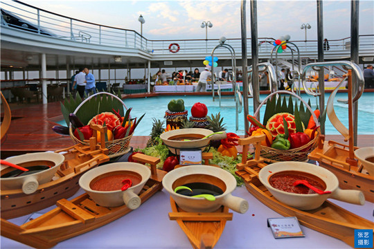 接待我们的邮轮工作人员向我们介绍:“船上设有丰富的饮食及娱乐设施、国际级的服务,及短程的邮轮航线,包括充裕的观光时间、购物及饱尝地道美食。丽星的邮轮假期亦成功建立了其老少咸宜的形象,改变了一般人认为邮轮旅游只适合年老人士的错误观念。船上并设有适合大人及小朋友的设施及活动,是家庭的度假新选择”。