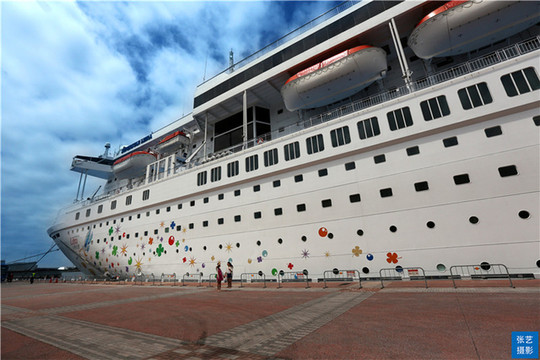 第一次是首次坐邮轮,有一种惊慌不安感,由于受到了世界著名的好莱坞电影“泰坦尼克号”的影响,心里总是忐忐不安,一想起这么大一膄邮轮在茫茫的大海上航行几天,万一像电影情节中出现的那样---相撞而沉没------可咋办?呵呵,其实登上邮轮那一瞬间,所有的恐慌都不复存在了,感觉就像是在陆地上一样,没有颠簸,走路很平稳。