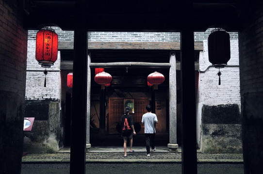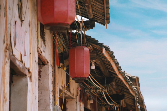 古巷长廊游人稀疏时产生无比和谐的美,慈祥的老者端坐一旁,屋檐下的红灯笼一墙挨着一墙,守护祖宅也守护着他们心中的信仰。