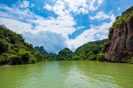 游丹霞山不坐船游览一趟锦江也会失去大半的趣味,锦江就如同它的名字一般,像是环绕着丹霞山的一条翡翠色锦缎,美丽迷人。
