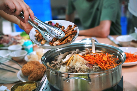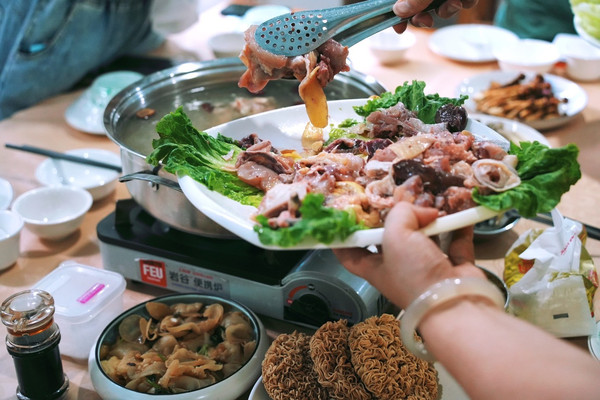 各种菌类和鸡肉烫的火锅,营养真的太丰富啦!