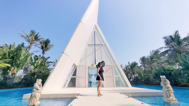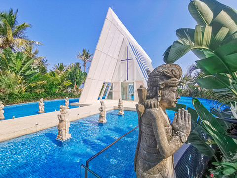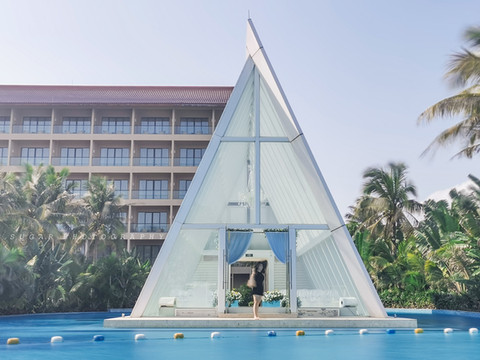 在酒店海岸沿线建了一座十分具有 东南亚 风情的教堂,完美的三角形设计,美轮美奂,是梦想中的婚礼殿堂。海边总是充满着无穷的吸引力,戏水堆沙,肆意玩耍,这里正是不可多得的高人气网红打卡地。