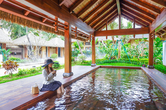 酒店和温泉天然兼容,想象一个阳光明媚的午后,毫无束缚的泡在温泉里,闭上眼呼吸周围的新鲜空气,阳光照着棕桐树的影子缓缓的砸下来,配合着水的律动,热气袅袅中,柔柔的摇晃在波涛里。泡汤的地方,分为男女汤,里面有更衣柜、汤池、湿蒸房、沐浴区、卫生间,还有餐厅,园林景观设计很美,亭台楼阁,流水潺潺,能让你瞬间放松。环境偏向古典,设施齐全,服务人员贴心,沿路都有茶水和毛巾招待。在城市中生活的人们,很少停下来去欣赏外面的景致,想象傍晚时分云霞铺满天空,偶有海鸥从眼前飞过,听着浪涛声,幸福油然而生!这家温泉就拥有最好的海景视角,你躺在温泉中,感受着与众不同的美丽。