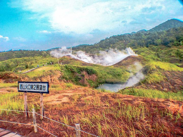 有珠火山是需要花一定的体力的,搭缆车几分钟之后上到山顶,长长的步道就铺在山体上,一路上都会看到冒着袅袅白烟的火山口。而且步道会把你直接送到火山口里面,这是很难得的近距离观察火山口的一个机会。洞爷湖