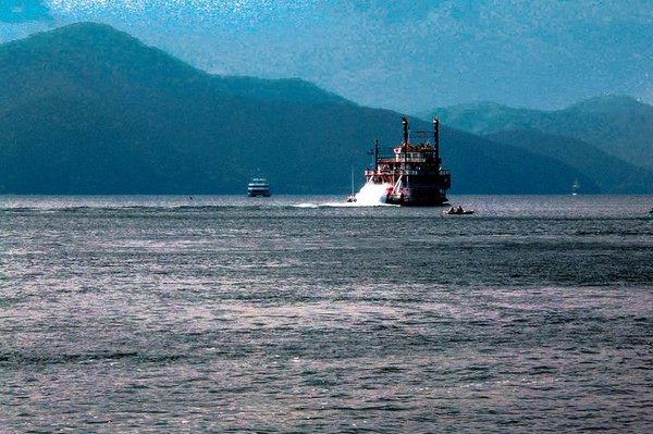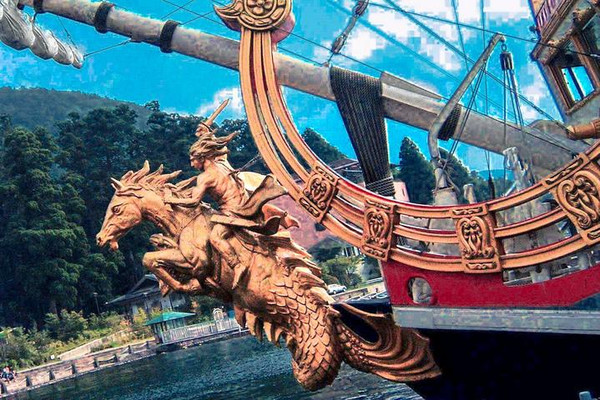 海贼船色彩斑斓、很大,一次能上一百多人,船分三层,很多人喜欢在各层甲板上吹风、拍照,沿途风景很美。坐上游船,尽情欣赏芦之湖两岸的风景,复古的游船航行在壮阔的湖面上,徐徐微风吹来令人神清气爽,怡然自得。
