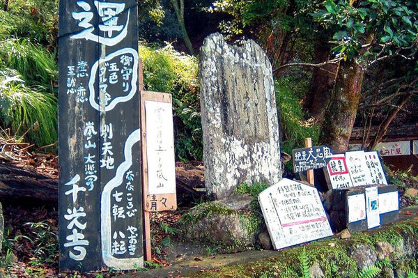 在甬路的另一侧有“奥之院”,旁边有下山路,通往“三十三观音堂”。走进的“33观音殿”干净整洁的院子。这里绿树成荫,曲径通幽,风景优美。在摆放金观音像的出口处有一个延命十句观音经石碑。碑文为:观世音 南无佛 与佛有因 与佛有缘 佛法僧缘 常乐我净 朝念观世音 暮念观世音 念念从心起 念念不离心。由这十句观音经,不难看出日本僧人祈求和平的心愿,但愿这个心愿是真正由心而发。