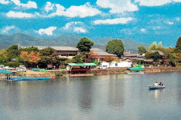 位于京都市区以西的岚山自平安时代以来就是许多贵族的别庄所在地,其名称经常出现在历史故事与古典文学作品之中。由于桂川河岸在每年春季与秋季都有大面积的野生樱花与枫林可观赏,因此长期以来也是观光旅游的热门点之一。