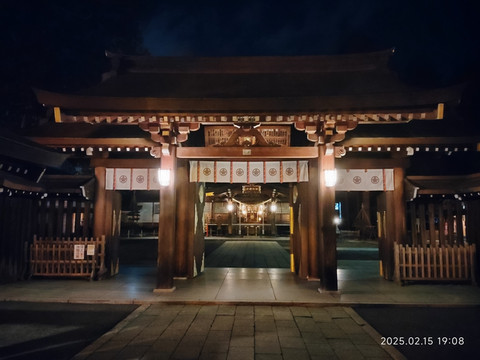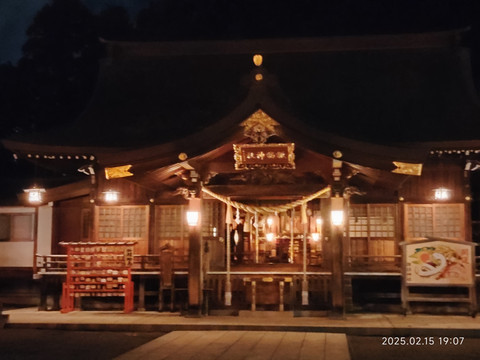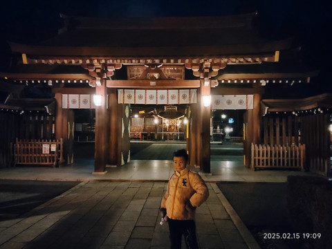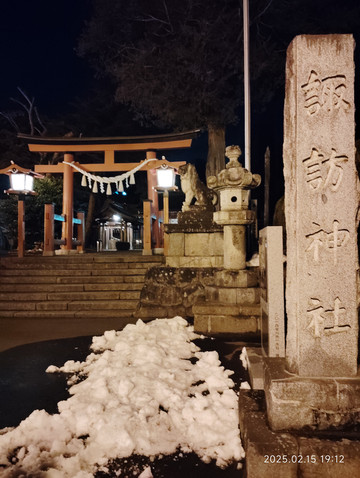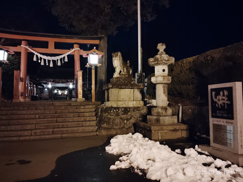 在酒店休息了一会就准备出去吃完饭了,跟着导航走了一家,竟然没有开门。后来就在路口找了家小馆子,挺实惠的,点了两份面,一份饭,面900日元一份,饭300日元,不过饭的确量比面少不少。面里面各种料挺多的,口感也可以,就是咸的厉害,感觉嘴巴抹了一层盐似的,狂喝水才可以。也和店主通过谷歌翻译吐槽了下,店主说日本人吃东西是比中国人咸的多的。小店里面暖气打得很足,出来后,虽然到处积雪,也没感觉怎么冷。街道上路灯稀稀疏疏的,两边的店家也是昏昏暗暗的,不如国内城市那样,到处亮堂。沿着道路走了一会儿就碰到一家神社——诹访神社。规模还不小,里面只有昏昏几盏等亮着,晚上走在里面还有些神秘得。旅途后面看到日本到处是神社,有些规模小的就是一块碑什么的,当时也觉得这就是个普通的神社吧,后来才知道这个还算是日本有名有姓的大神社呢。