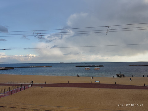 从餐厅出来,不远处就是中华街了,在国外逛中华街感觉挺怪的,看着一些在国内习以为常的在这边成了特色旅游资源,一些游客在里面时不时被一些吸引而驻足。中华街也就短短一条街,一会儿就走到头了。搭乘地铁去须磨看看神户的海滨,还坐错了车的班次,有些班次是到须磨,有些是到须磨海滨公园。我们是先到的须磨,这边是有个大海滩,不过奈何天冷风大,空旷的海滩上吹得人头皮发冷。这边的海真是很干净,靠近沙滩的海水都是清澈见底,没有一点浑浊,国内也就海南一些人烟稀少的沙滩才看到过这么清澈的海水。如果是夏天过来了,倒是值得下水玩玩水,冬天嘛就算了。