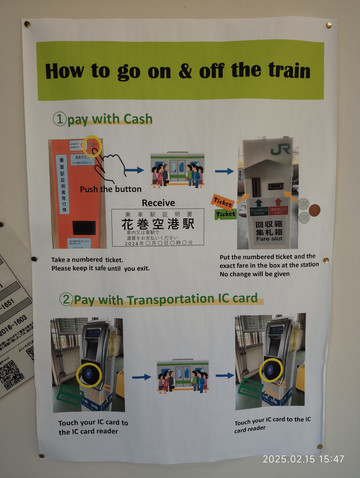 落地下机,排队过海关。因为之前已经在网站上入境申报过了,倒是省了填写报表的麻烦。平均一个人也就几分钟,还算可以,行李检查过后就算是正式入境了。机场大厅里面还安排了欢迎的人,也有懂中文的志愿者,还是挺方便的,买好了去火车站的巴士票,儿童都是半价的。火车站说是花卷机场站,其实和机场还是有些距离,不如国内一些机场火车枢纽设计在一起。当然这样的枢纽设计在一起,除非是一起建设的,要不然建设有先有后的话,成本就要增加不少了,日本技术设施设计建设上很多都是体现出这样的经济性,这一点在后面的几天行程里面也是深有体会。当然从心里觉得,国内那种大操大办的城市建设,着实是有很大的资金浪费,脱离了经济高速发展带来的财政红利后,日本这种从经济实用角度的城市建设思维方式也是大势所趋。