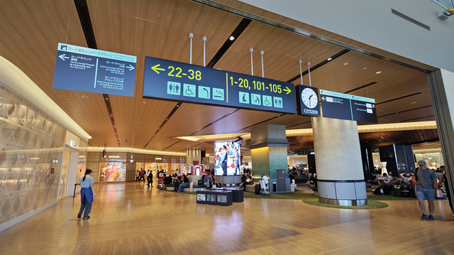 关西国际机场有2座航站楼,其中T1航站楼面积30.4万平方米,T2航站楼面积6.7万平方米;站坪共设105个机位,其中41个位近机位。