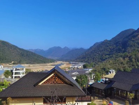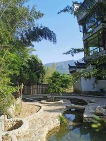 这里环山拥抱,空气很好,很宁静,房间很大。温泉区依山而建,舒服...酒店后面看着指引还可以走走小段山路看瀑布,酒店出门不远很多农庄吃饭的!