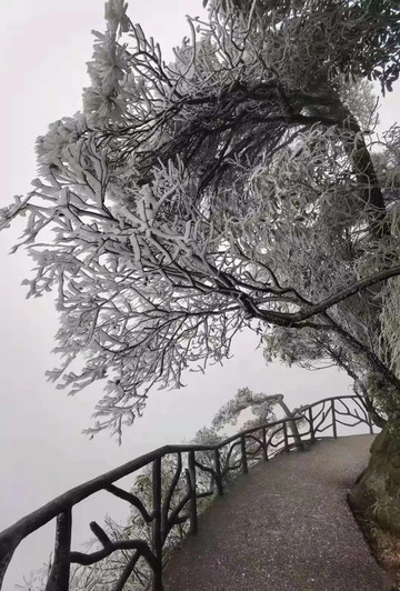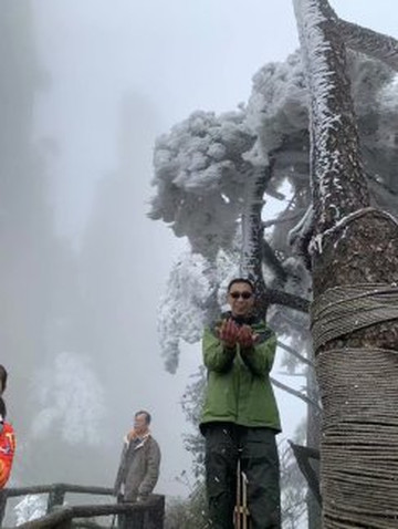 上三清山需要勇气与体力,一早我们就出发了。三清山是著名的道教圣地,沿着登山古道,有着众多的道教摩崖石刻,浓缩了道教精神的精华;这里的山峰林立,鬼斧神工,云雾缭绕,宛若仙境!这次登山,刚好遇上三清山迎来今冬第一场雾凇,伫立远眺,山上的树仿佛披上了一层闪亮的“铠甲”,晶莹剔透、分外壮观;踱步近观,轻盈洁白的雾凇附着在枝头、树叶上,宛如琼树银花,清秀雅致。漫山雾凇缭绕,犹如置身仙境,美得就像是明信片上的风景一样!