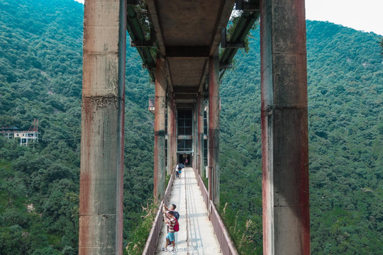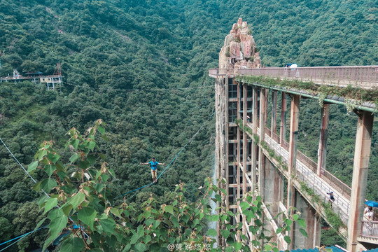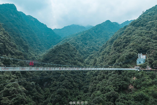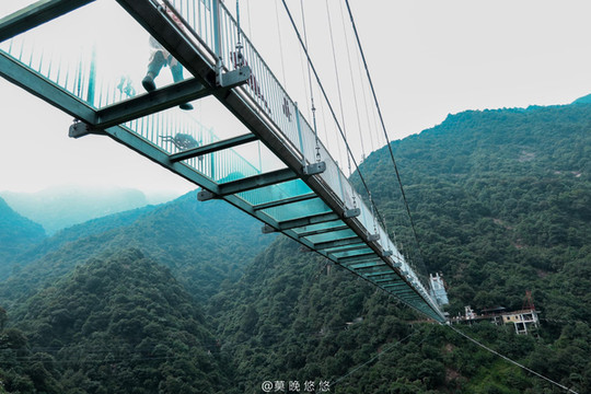 玻璃桥悬于望君台旁,直通对面山峰,两峰地势险峻,中间峡谷横穿。走在玻璃桥上时,可以将景区里的峡谷风光尽收眼底,美不胜收。