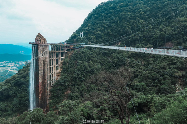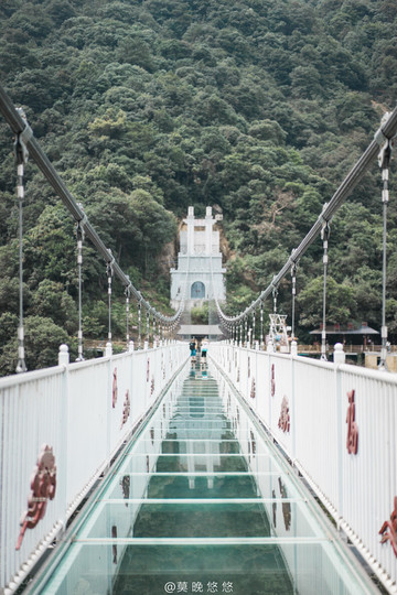 而观赏云上飞瀑佳位置之一就是玻璃桥了。这是是目前广东省规模最大的全透明高空景观玻璃桥,桥面全部采用透明玻璃铺设,桥体全长316米,垂直高度达168米,桥体总宽为2.8米。