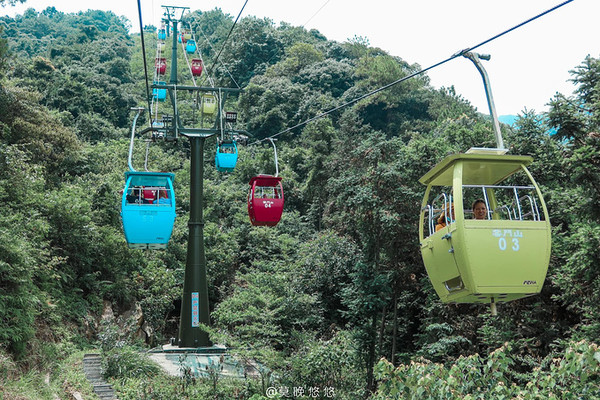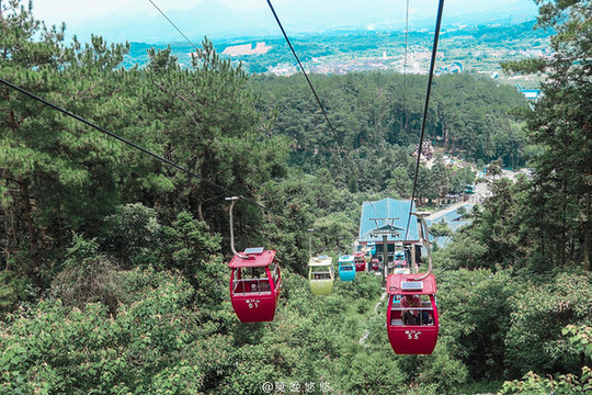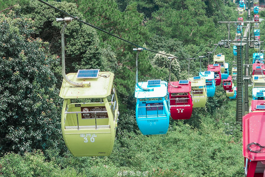 上山的话,可以直接乘坐糖果缆车,不用担心大夏天太热太累的问题。坐上缆车,可以一路缓缓欣赏这山间的风景,置身于这绿色的海洋之中,不由自主地深呼吸。而远处的风景亦是十分秀丽,让人看了心旷神怡。