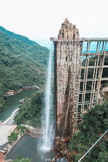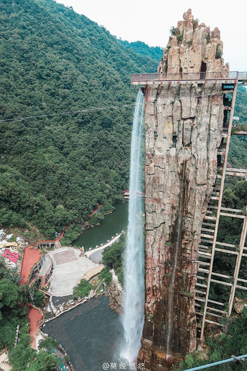 而且在瀑布内还安装有3台观光电梯,乘坐电梯的时候,可以看到玻璃外面的瀑布倾流直下,十分新奇,这样的瀑布与电梯组合游玩项目还真是第一次见。