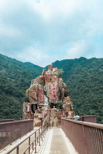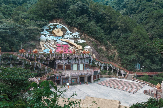 云山秀顶是云上飞瀑的顶部,是由假山组成的,往里面走别有洞天。站在周边的玻璃栈道上,可以看到整个山谷的风景。