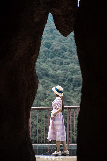就是以洞口为前景,然后人站在玻璃栈道上,像画框一样框住,很喜欢这样的构图,于是拉着小伙伴拍了好久。