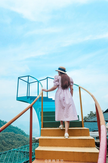 路过白色翅膀之后,便是这个彩虹色的楼梯,在蓝天的映衬之下,显得更加地梦幻,就像动画里的场景一般。喜欢拍照的小姐姐一定要记得合影呀,非常出片。