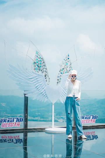 走了约摸5分钟后就到了栈道右手边的网红打卡点-天空之镜,一幅在山谷之上的白色翅膀,可以站在边上拍美美的照片,有一种即将展翅高飞的感觉。