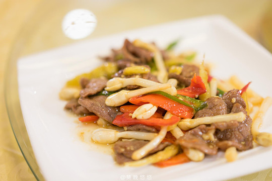 牛肉炒酸豆芽,肉质很嫩,豆芽是腌制过的,酸辣可口,夏天吃非常开胃