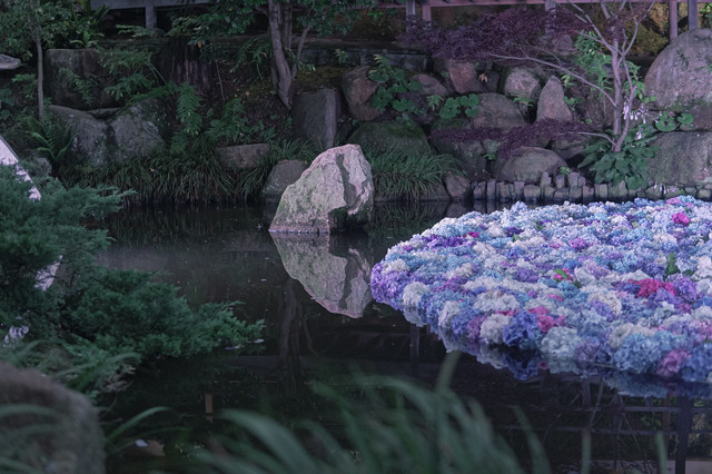 “这一池的 紫阳 花是工作人员刻意减下来放进池子的,好像为了刺激生长。”