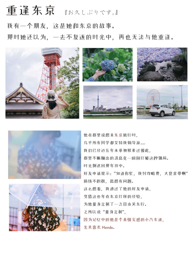 一路绿荫环绕, 东京 塔在视野范围内逐渐变大,身边不断讲述本田车的他语气亦如年少时那般轻快而坚定,内容却更加丰富有理有据。