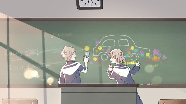 从前没觉得喜欢车的男孩子如此可爱,想到昨天开始画的那两幅画,有些感情萌芽后便抑制不住了吧。