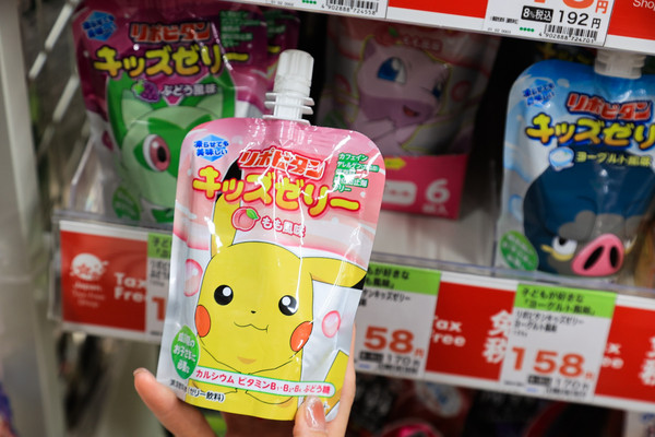 日本的药妆店不止卖药,各种零食、饮料等也挑花眼,此外我还在药妆店给小朋友买了些大正力保健果冻饮品,据说味道不错,外包装上皮卡丘之类的动漫就足够吸引小朋友了。