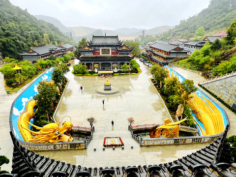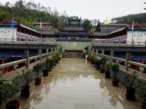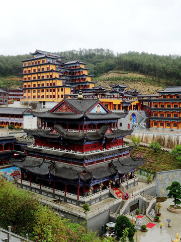 东华寺的建筑似乎与以往所见寺庙不同,更有创意,更加宏大。夹在群山之间,并充分利用地势地貌,将寺庙呈阶梯状层层向上。