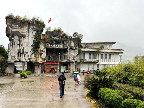 午时,跨过 广东 与 江西 的边界,来到 江西赣州龙南 市小武当山下,12:45拐进姐妹峰农庄餐厅吃午餐,进来后发现这里是另一个天地。餐厅不远处是一片高低起伏的山峦,云雾缭绕,其中有一座峰形状特别突出,也许就是当地人称作的姐妹峰吧,昂首挺胸屹立在群峰之间。