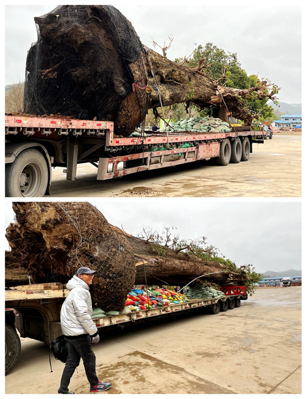 未进入大门,见到广场上板车拉着两棵巨大的菩提树。菩提树在佛教中有着重要意义,代表着觉悟与智慧。