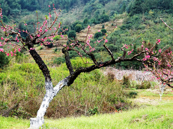 几年前就对 连平 桃花情有独钟,因为这里的桃树不是普通的桃树,而是鹰嘴桃桃花。最喜欢的是那些老桃树,弯弯曲曲富有张力的褐色树干,如盆景一般,造型非常漂亮。它的果实虽没有水蜜桃那样漂亮的外衣、个头也不大,但因爽甜深受 广东 人民的喜爱。