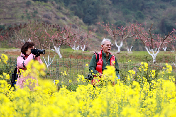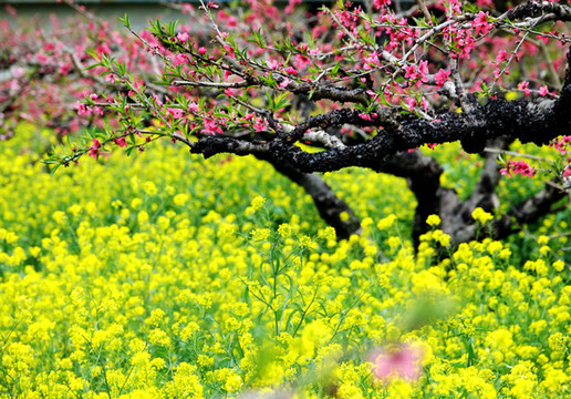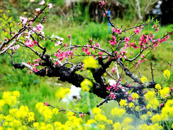 桃花和油菜花,一个洋溢着浪漫,一个洋溢着欢乐,在春天里把大地装点得五彩缤纷。朋友有趣点评:一个辛勤耕耘蔬油,一个只顾貌美开花,你情我愿绝配搭档。