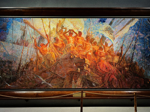《胸•郑和船队•大海》讲述的是郑和下西洋的场景,郑和是海上 丝绸之路 的开创者和探索者,郑和下西洋对东西方文化的交流和世界经济贸易的往来,影响深远。以“胸”为表现形式。
