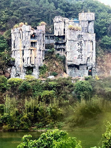 车刚刚停在美术馆前,透过车窗在滃河边就能见到它独特风格的外观,如岩石般的外立面与大自然非常和谐的融合在一起,颇有气势。这是在政府的支持下,涂志伟自筹资金6000万,在滃河旁建起了的涂志伟美术馆。美术馆三面环山,一面环水,外形像一台钢琴镶嵌在青山绿水之间。