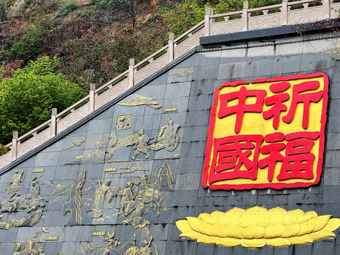 一侧的题刻“祈福 中国 ”,寓意福佑中华,风调雨顺,国泰民安。