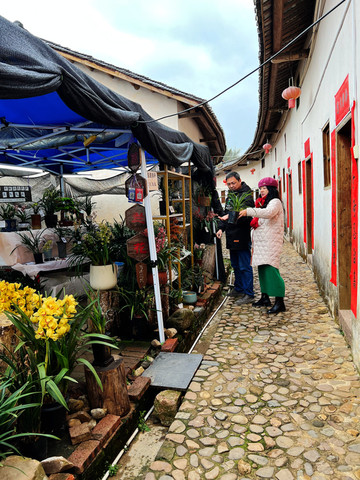 我们主要参观了湖心坝长安围,又称湖心坝客家民居群。据介绍湖心坝长安围始建于明朝正统年间,距今已有550多年的历史,祖上来自 福建 。主要由沈姓族人居住,最多住了百人。如今基本上已迁出到政府建的社会主义新农村居住,剩下个别的,利用这座围屋场地卖兰花。我们就遇上了一位。