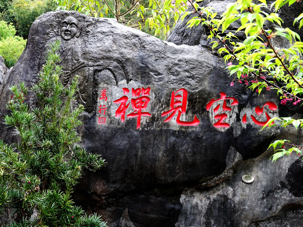 这些岩石错落有致,一尊尊僧雕藏在着乱石之中,岩石上似乎能看到僧人的不同表情。岩石上不时能看到刻着出自东华禅寺方丈手笔的佛门人生格言:心空见禅、佛即心、心即佛、悟、和谐…