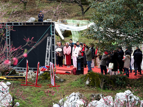 开幕式在水墨桃花谷举行,从县城过去要半个多小时,要拐入狭窄的乡道。因为天气寒冷,参加开幕式的人并不多。我们26人算是一支大队伍了(缺了几个含我)。