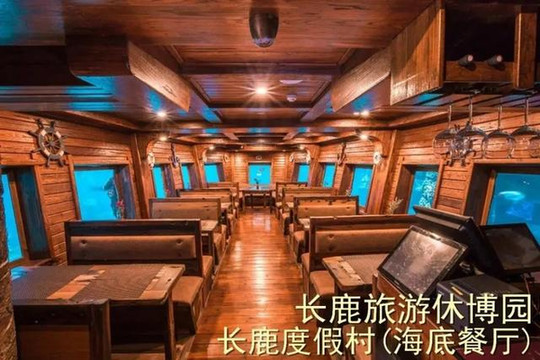 餐厅四壁的玻璃窗将海底世界完全展现在眼前