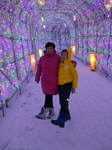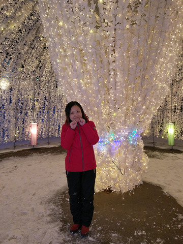 晚上还去酒店附近的彩灯隧道逛了一圈。谁还不会卖个萌呢: