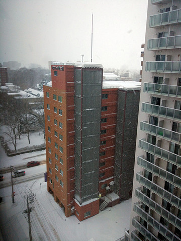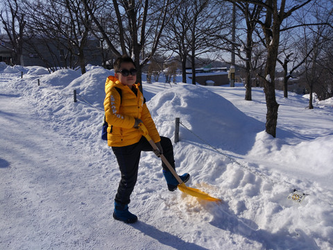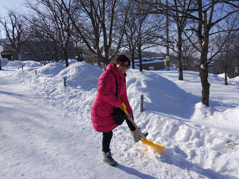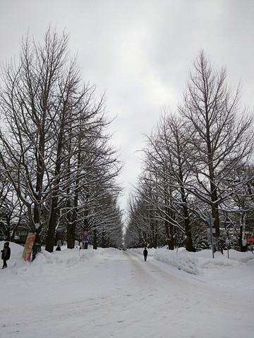 全都搞定以后,开始步行前往北海道大学。下过雪的街道很是湿滑,我们虽然都穿了防滑的雪地靴,仍是步履维艰,一不小心还会摔个四仰八叉,实在是水土不服。我们小心翼翼地走在路上,看着身边匆匆而过的路人,踩着高跟鞋也一样快到飞起,不禁好生羡慕。