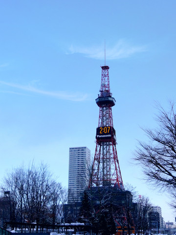 乘车返回酒店的路上,顺便远观了一下札幌电视塔。这座电视塔高90.38米,建于1957年,是札幌的地标建筑,也是这座城市东西南北的分界点。