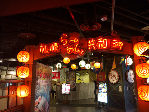 午餐在拉面共和国解决。拉面共和国开设在著名的百货大楼ESTA的10层,ESTA就位于JR札幌站旁,非常便捷。拉面共和国汇集了8家北海道最具人气的拉面店,集合了札幌的味噌拉面,旭川的酱油拉面,函馆的盐味拉面以及钏路的高汤拉面。而且据说这8家店铺不是固定不变的,每年都会进行评比,不符合标准的将会被淘汰,由其它优秀的店铺入驻。拉面共和国的大门口立着共和国的招牌,整个设计还原了上世纪40年代到50年代的札幌街景,还有蒸汽火车、木质车站、神社等渲染气氛,整个氛围古朴而有趣。