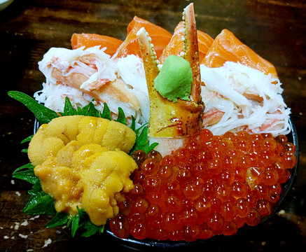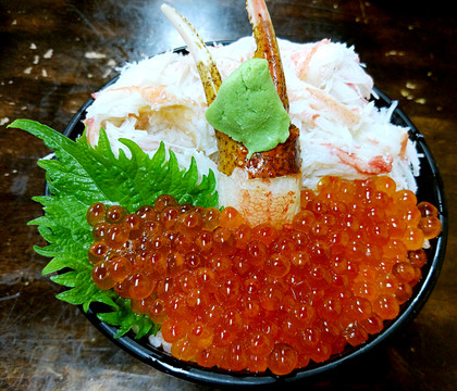 虽然已经吃过早饭,但何妨再来点海鲜呢。有一家名叫“市場食堂”的店面,属武田鲜鱼店直营,位于三角市场内。和ANA共同推出的「ANA特制盖饭」只需2000日元,就可以品尝到满满一大碗海胆、螃蟹、鱼子,包你满意!也有1000日元左右的海鲜盖饭,海鲜种类和数量也不会让客人失望。营业时间从早上7点开始。